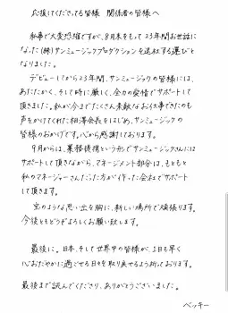 「デビューしてから23年間、サンミュージックの皆様には、あたたかく、そして時に厳しく、全力の愛情でサポートして頂きました」とし、感謝の言葉を述べた。