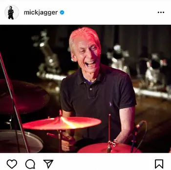 ジャガーは24日、ドラムセットを前に笑顔を見せるワッツさんの画像をツイッターに投稿し追悼した。