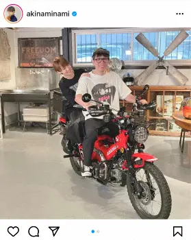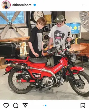 濱口の公式YouTubeチャンネル「濱口優と秘密基地」で21日に「【バイク】奥さんにカスタムをお披露目」とのタイトルで動画を更新し、カスタムした愛車のホンダ「CT125ハンターカブ」を披露。今回は、その際のオフショットと思われる写真を2枚投稿した。1枚目にはともにバイクにまたがり、仲睦まじい様子で南が濱口の肩に手を置くショット。2枚目にはバイクの横に立って2人で楽しそうにバイクを眺めるショットをアップした。