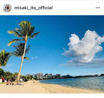 伊藤は「#ハワイのサンセット」「#リフレッシュ」「#束の間の時間」などと記し、夕暮れ時の2枚のビーチを投稿。「8、9月のハワイは過ごしやすく 最高気温が30度前後、最低気温は25度前後で快適です。夕方のビーチ砂浜で佇むだけでもリフレッシュできます」とつづった。
