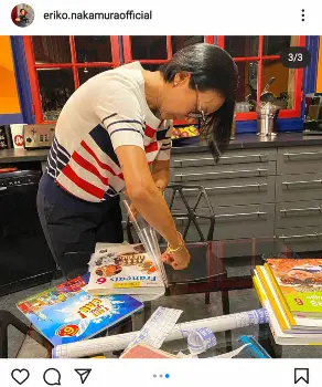 フリーアナウンサーでパリ在住の中村江里子(52)が5日、自身のインスタグラムを更新し、中学生になった次女の教科書にプラスチックのカバーをしている様子を披露した。