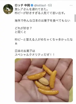 「激レアさんを連れてきた。柿ピーが好きすぎる人見てて思い出す。海外で色んな日本のお菓子を食べてもらい『どれが好き?』と聞くと『柿ピー』と答える人がめちゃくちゃ多かったなぁ」とつづり、手のひらに乗せた柿ピーの写真をアップ。「日本のお菓子はスペシャルクオリティだぜ!」と記した。