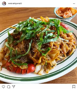 「#家庭内復帰 #リハビリ開始 #飛級回復食 #病み抜け焼きそば」とハッシュタグを添え、料理の画像を投稿した。