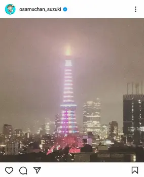 フォロワーからも「おさむさんありがとう」「見たかったです」「東京タワー素敵」「最高ですね!」「SMAPは今でも心の糧です。30周年おめでとう」などの声を寄せていた。
