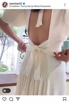 冒頭、ざっくり開いた背中のリボンを結ぶシーンがあり、フォロワーからも「本当に素敵です 背中綺麗」「背中綺麗だな」「セクシーすぎ」「リボンがとっても可愛いですね」「かわいい」「美し過ぎる」「あなたがお花みたいです」などの声が寄せられていた。