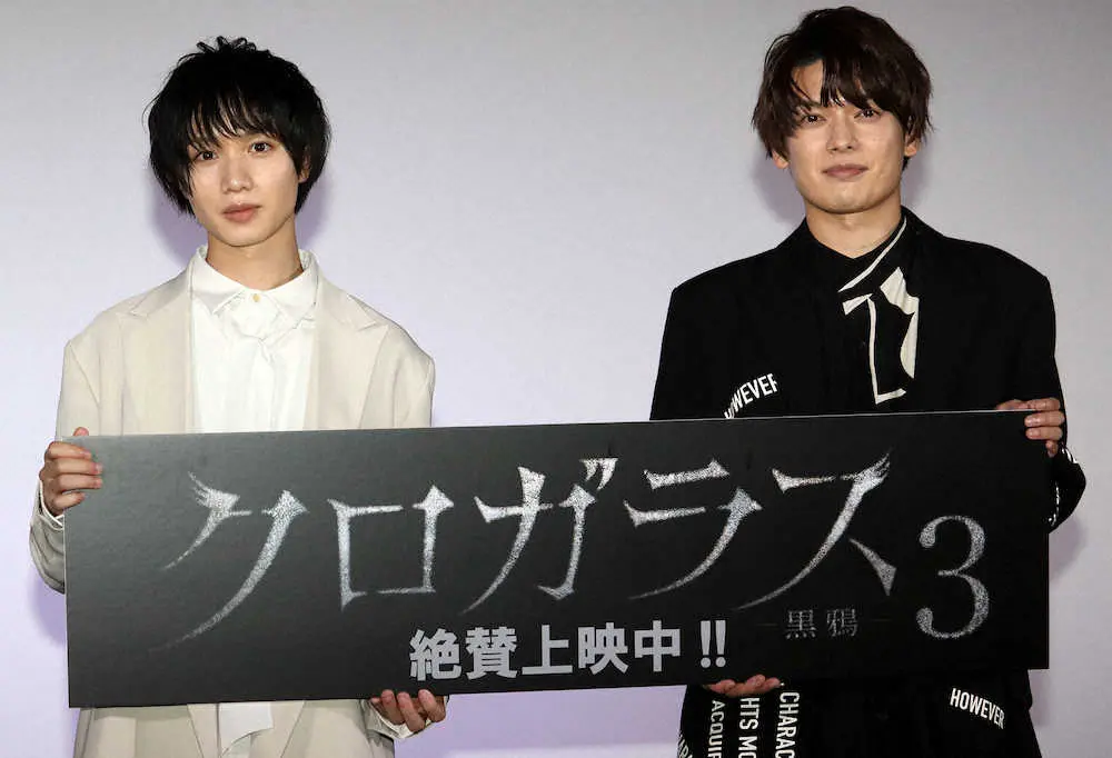 俳優の崎山つばさ(31)が11日、都内で主演映画「クロガラス3」の公開記念舞台あいさつに出席した。