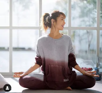 「秋の私の部屋着」とし、ポニーテール、グレーとえんじ色のゆったりとしたウエア姿でヨガのポーズをしている写真をアップ。「締め付けが少ないのでヨガ・瞑想にも向いている。あ~心地よい服すきすき」とつづった。
