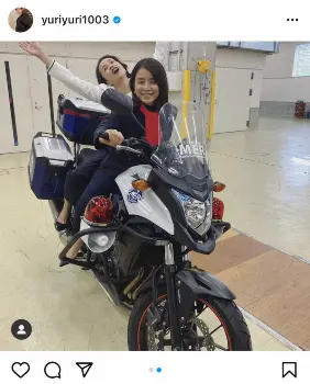 ファンからは「お2人共最高に可愛いです」「このツーショット最高」「めっちゃ仲良しですね」「最強の2人」「可愛すぎます」「バイク姿似合ってます」などの声が寄せられた。