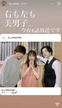 同番組のインスタグラムでは「きゃーーー桃ちゃんどうするの!?」と内田が小関と塩野に挟まれた3ショットが公開され、内田も自身のインスタグラムストーリーズで「右も左も美男子…」とつづった。