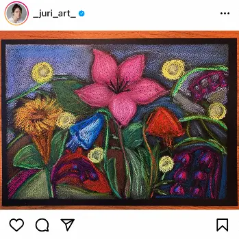 「春以来、久しぶりに絵を描きました。気ままに。そんな日があってもいいね」つづり、黒をバックにカラフルな花たちを描いた絵を公開。ピンクや青、黄色など色彩豊かで鮮やかな1枚となっており、ハッシュタグには「#気の向くままに#上野の樹里美術館」と添えた。