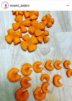 無精ひげを生やし、リラックスした表情の近影をアップ。「さて、先日その『イット』で紹介した『大豆まるごと豆乳鍋」にチャレンジしました。食品ロス削減を意識した鍋で、名前の通り、豆乳と味噌をベースに、豆腐、油揚げ、おからなど、大豆づくしとなってします」と自宅では番組で紹介した鍋作りに挑戦したという。さらに「一度やってみたかった、にんじんとしいたけの飾り切りにも挑戦しました。…こちらはちょっと難易度が高すぎました。特に人参は、このままのペースで作っていると夜食になってしまいそうだったので、飾り切りを中断しました。結果、某ゲームキャラが大量発生したかのようになってしまいました」と家事にも奮闘中の様子。