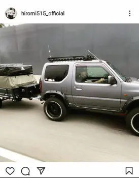 「移動中」と記すと、上にカバーをつけ、テントを載せたけん引トレーラーをジムニーで引きながら走る姿をアップ。自身のユーチューブチャンネル「Hiromi factory チャンネル」でも「【新アイテム】どうしても気になっていた牽引トレーラー買ってみた!」と題してトレーラーを紹介。走る姿を公開している。