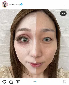 SKE48の須田亜香里(29)が24日、自身のインスタグラムを更新し、ドールメーク姿と、半分メークを落とした姿を披露した。