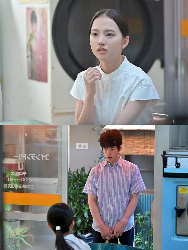 連続テレビ小説「おかえりモネ」第50話。コインランドリーで百音(清原果耶)とすれ違う菅波(坂口健太郎)(C)NHK