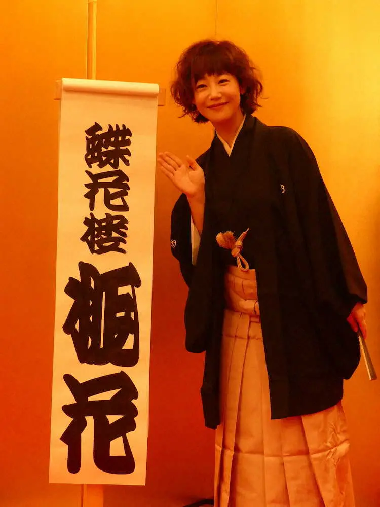 江戸時代から続く亭号に、師匠の小朝が字画を念入りに調べて「桃花」と命名。小朝の本名・花岡の「花」も盛り込んだ。ぴっかり☆は「蝶花楼のお姉さんと呼ばれたい」と笑わせながら「重みを感じながら精進します」と語った。