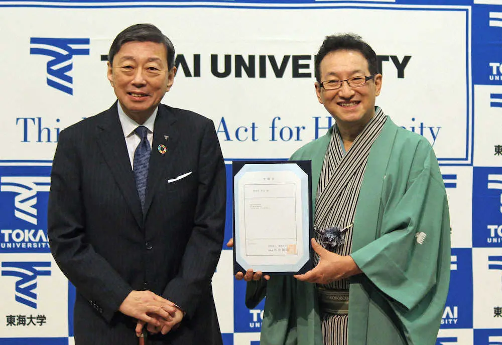 テレビ番組「笑点」の司会も務める人気落語家の春風亭昇太(61)が、東海大海洋学部の客員教授に就任し、東京都港区の同大高輪キャンパスで5日、委嘱式が行われた。