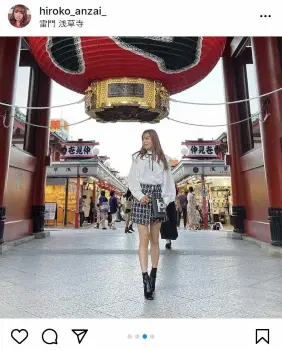 安西ひろこ 雷門でのミニスカ私服コーデ披露に「スタイル良すぎ」「美脚」「洋服も可愛い」