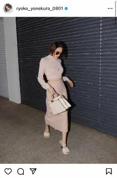 「時代を問わず愛されているFENDIのアイコンバック“Peekaboo”私のマストアイテムです」とつづり、短めのあわいピンク色のトップスに同色のロングスカートを合わせたコーディネートをアップ。ウエスト部分がチラッと見える写真を投稿した。