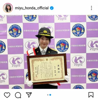 本田のりりしい制服姿にファン、フォロワーからは「可愛い」「凄くお似合いで素敵で可愛いくて綺麗(きれい)過ぎます」「大人っぽ」「みゆちゃん感謝状もらって良かったですね 似合うよ 可愛いですよ キュン」「たまらん」「こんな警察署長がいたら2度見いや3度見しちゃう」「手錠かけてほしい」「逮捕されたい」といった反響が寄せられている。