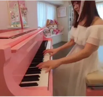 「ショパン様の『革命のエチュード』インスタ1分編です」とつづり、白のオフショルダードレス姿で、ピンクのピアノで「革命のエチュード」を弾いている動画をアップした。