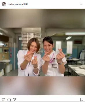 米倉涼子 “失敗しないナース”松下奈緒と指ハート2ショット公開 「2人ともかわいすぎ」の声