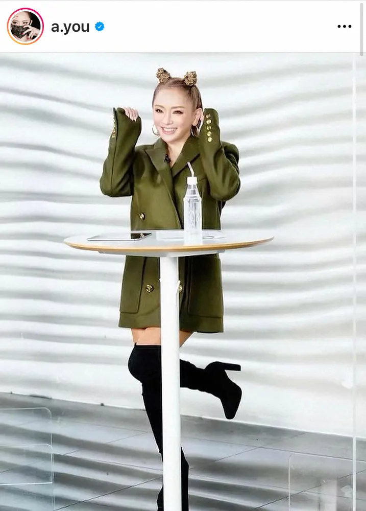 浜崎あゆみ お気に入りファッションの全身ショット ニーハイからスラリと美脚「バブリールック熱が復活」