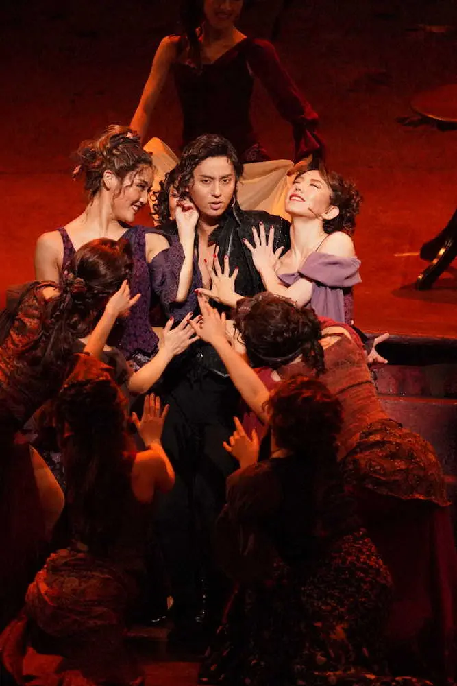 希代のプレーボーイが、真実の愛に目覚める物語。2年ぶりの再演で胸筋が前回より大きくなったと指摘されると「2年前より体が少し大きくなりました。男性の色気を出さないといけない役なので、(肉体は)見どころの一つかな」と語った。公演は来月6日まで同所で。
