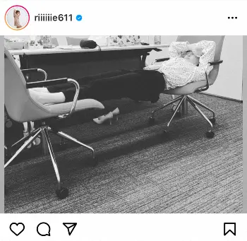 「仮眠はこうやって寝てるって言ったら信じてくれる?みんなおやすみっ。また、明日ねっ」とつづり、いすを少し離した状態で2つ並べ、一方には上半身もう一方には足先だけを乗せてバランスを保ちながら仰向けで仮眠するショットを公開した。