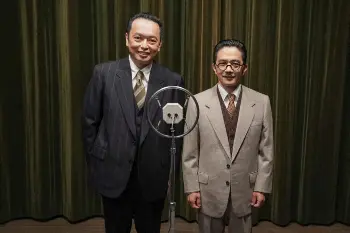 浜村が演じるのは、お茶の間で人気の名物ラジオパーソナリティー「磯村吟」。「中川家」の2人は漫才師「エンタツ・アチャコ」役で、剛が「エンタツ」、礼二が「アチャコ」を演じる。