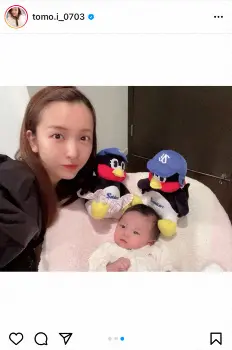板野友美「とても感慨深い年になりました」愛娘の頭上に「つば九郎」「つばみ」人形置いてV見守った