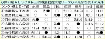 昨年のプレーオフ再現となった一局は、終盤まで劣勢だった豊島が永瀬の緩手を見逃さず、千日手へと誘導。「他に手段はなかった」という捨て身の戦法だったが、永瀬の打開手(127手目[先]3七金)を見て逆襲に転じ、最後は先手王を即詰みに討ち取った。「2敗しているので挑戦は難しい。いい成績で(リーグを)終わりたい」と話す豊島。悔しい逆転負けの永瀬は残り4局を「精いっぱい頑張るだけ」と歯を食いしばっていた。