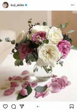この日は「いただいたお花を自分でアレンジしてみました」と報告し、白やピンクの花々をメインにしたアレンジメントを披露。差し色には緑の葉が取り入れられ、花瓶のまわりは花びらで装飾されている。これに対し久慈は「思ったより綺麗にできた気がする」と満足な様子だ。