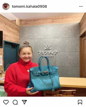 インスタグラムでの同じ写真とともに「ブランディアにバーキン売りました かなり高く買い取って頂いたのでまた行きたくなりました」と満面の笑み。「ブランディアさんありがとうございました」とつづった。