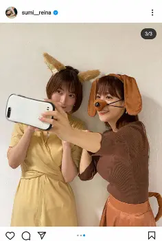 鷲見は「HappyHalloween」として、所属事務所の「セントフォースchannelの撮影でこんな格好をしました」とつづり、茶系のニット&スカートに茶色の犬の耳と鼻をつけた写真を投稿。さらに、狐の耳をつけたキャスターの阿部華也子(25)とのツーショットも披露した。