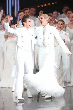 あこがれの白い軍服で「うたかたの恋」を披露する愛月ひかる(右)とトップ娘役の舞空瞳
