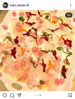工藤静香公式インスタグラム(@kudo_shizuka)から 工藤静香 色鮮やかな自作のカルパッチョに「もはや芸術作品」「高級レス… ギャラリーで見る この記事のフォト 2021年11月02日の画像一覧 もっと見る 2021年11月02日の画像をもっと見る