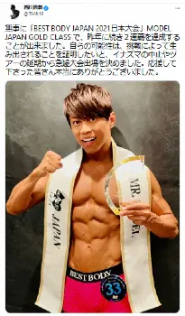「無事に『BEST BODY JAPAN 2021日本大会』MODEL JAPAN GOLD CLASSで、昨年に続き2連覇を達成することが出来ました」とツイートし、盾を手に、上半身裸でポーズを決めるショットをアップ。「自らの可能性は、挑戦によって生み出されることを証明したいと、イナズマ(ロックフェス)の中止やツアーの延期から急遽(きょ)大会出場を決めました。応援して下さった皆さん本当にありがとうございました」とつづった。