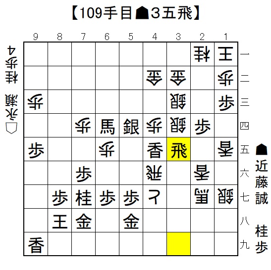 近藤が局後に選んだ一手は109手目の▲3五飛だった。