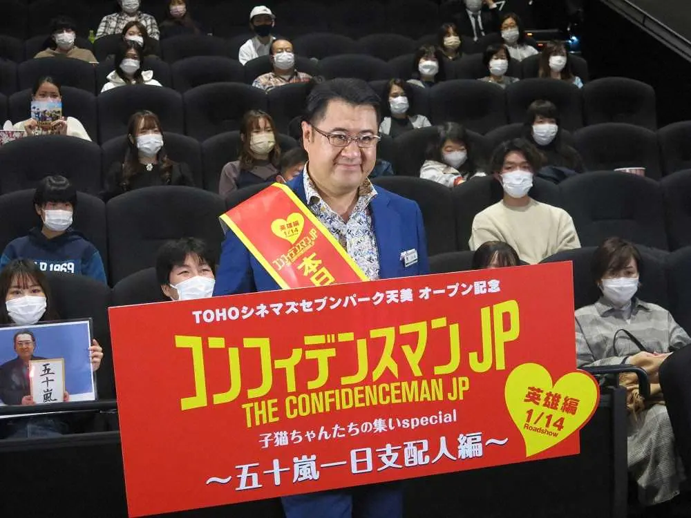 長澤まさみ(34)、東出昌大(33)、小日向文世(67)ら3人の信用詐欺師が欲望にまみれた人から大金をだまし取る痛快エンタメコメディ映画。19年公開の第1弾「ロマンス編」が興行収入29・7億円、昨年公開の第2弾「プリンセス編」も興行収入38・4億円と大ヒットした人気シリーズだ。第3弾「英雄編」の公開を前に、神出鬼没な腕利き詐欺師・五十嵐役を演じる小手が「宣伝部長として全国を駆け巡ります」とPR行脚する。