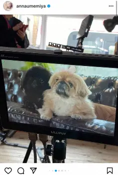 梅宮は撮影を終えて、「ちゃんと演技してくれましたよ」「ほっ」とコメントした。愛犬たちの様子については、「ペキニーズは、気まぐれですから、きっと、こちらがやって欲しい事、やってくれないだろうなぁ?と、ご飯食べるシーンも、人が沢山いると、緊張して、食べてくれないと、思っていたんです」「ところが、すんなりと」と振り返り、「監督さんや、カメラマンさんから、最後は、お疲れ様でした。と、言われていました笑」とつづった。
