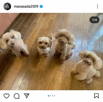 フィギュアスケート女子の10年バンクーバー五輪銀メダリストの浅田真央さん(31)が21日までに自身のインスタグラムを更新。自身の愛犬トイプードルのエアロと、姉の元フィギュアスケート選手でタレントの浅田舞(33)の愛犬ティアラ、小町、エルが勢ぞろいした写真を投稿した。