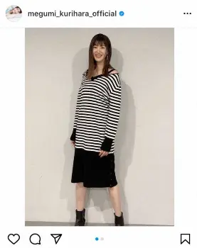 栗原恵さん 肩出しモノトーン、膝丈スカートの私服ショット 「すごく素敵」「美しい」の声