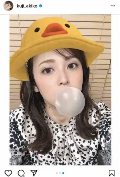 フジ久慈暁子アナ ひよこの帽子と風船ガム…お茶目自撮りに フォロワー「めっちゃ可愛い」