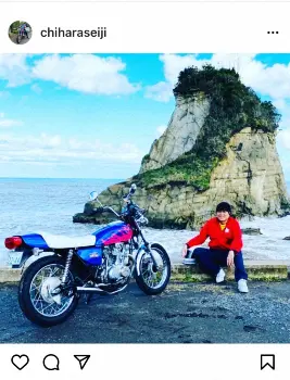 「これええ感じちゃう」と記し、大きな岩のある海岸に座るカスタムされた自身の愛車「スズキ・GS400」との2ショット写真をアップ。バックの岩がまるで湘南の“烏帽子岩”のようにも見える湘南風なショットになっており、ハッシュタグでも「#千原せいじ」「#gs400」「#スローライフ」「#湘南爆走族」「#経堂爆走族」と添えた。