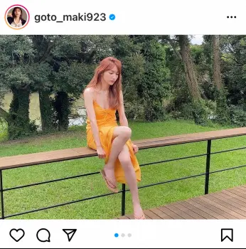 歌手の後藤真希(36)が26日、自身のインスタグラムを更新。お気に入りのオレンジ色のキャミワンピース姿を公開した。