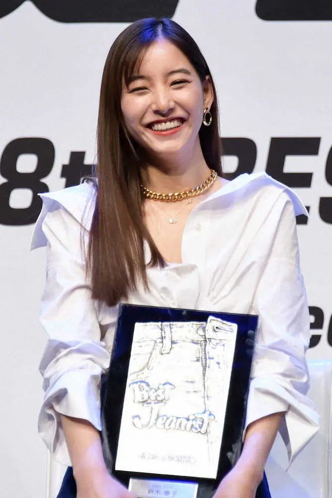 モデルで女優の新木優子(27)が26日、自身のインスタグラムを更新。おなかチラ見せファッションで「第38回ベストジーニスト2021」受賞を報告した。