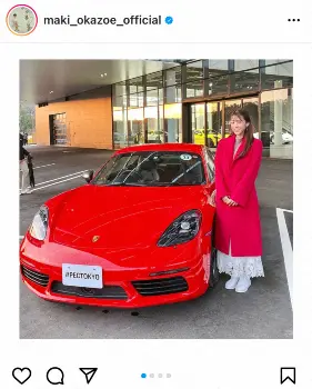 フリーアナウンサーの岡副麻希(29)が28日、自身のインスタグラムを更新し、赤のポルシェとの2ショットを投稿した。