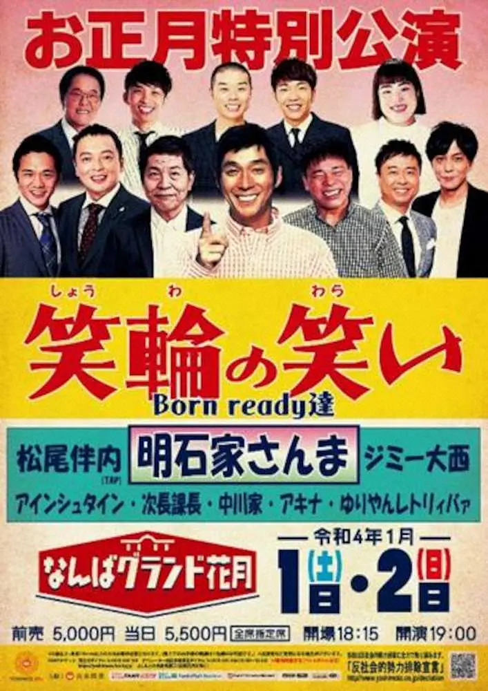 お笑いタレントの明石家さんま(66)が来年1月1、2の両日、大阪・なんばグランド花月(NGK)で正月公演「笑輪の笑い~Born ready達~」を開催する。