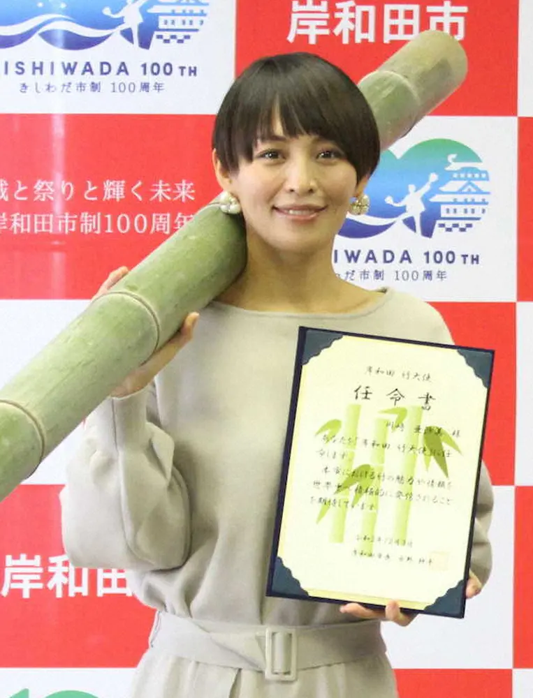 岸和田市の初代竹大使に任命された川崎亜沙美