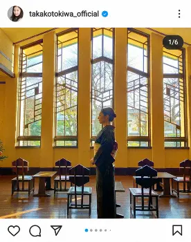 フォロワーからも「素敵綺麗ショット」「お着物着た貴子さんの美しさ」「凛とした着物姿と建物が相まって、とても素敵な写真ですね」「着物が建物とピッタリ」「名建築に着物姿で凜と立つ姿、カッコいい」「綺麗ですね」「素敵な空間」「とても素敵な雰囲気」「常盤さんの姿勢の良さにびっくりです」などの声が寄せられていた。